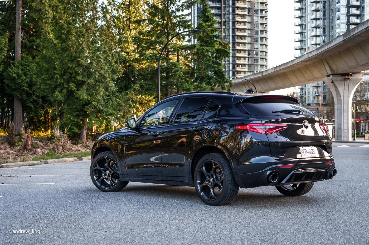 With the DNA selector in Dynamic mode, the Stelvio feels more like a sport sedan with very little body roll and just the perfect amount of feel (for a crossover) through the steering wheel. It’s a great crossover for twisty roads, such as on the Sea-to-Sky highway enroute to Whistler, British Columbia.